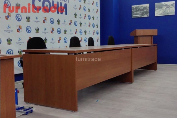 Помимо кресел для зрителей, в конференц-зале Водоканала г. Сочи были доставлены современные трибуна для выступлений, а также столы для президиума, создающие рабочую атмосферу и способствующие эффективному проведению заседаний. Вся корпусная мебель, использованная в проекте, изготовлена из качественных, современных материалов, что гарантирует ее долговечность, устойчивость к износу и эстетичный внешний вид на долгие годы. Мы гордимся тем, что наша продукция отвечает самым высоким стандартам качества и отвечает потребностям наших клиентов.