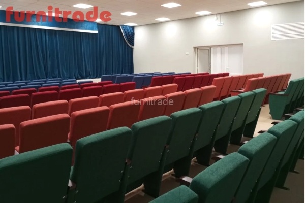 Теперь актовый зал украшают яркие и жизнерадостные кресла для зрительных залов Неаполь Ф Текс. Эти театральные кресла, выполненные в разных цветах, привнесли в пространство актового зала свежесть и динамику, кардинально изменив его облик по сравнению с прежним, уже устаревшим и однообразным. Монтаж новых театральных кресел прошел быстро и эффективно, заняв всего несколько дней.